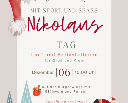 Wir laden alle sportbegeisterten Mitglieder – ob groß oder klein zu einem bewegten Nikolausnachmittag ein! Mit Laufen, Aktivstationen und Punsch inklusive. Setzt eure Nikolausmütze auf!