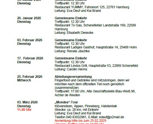 Nach Rücksprache (meldet euch dazu bitte rechtzeitig über die Geschäftsstelle) würden wir am 09.10.2023 noch einen Termin anbieten.