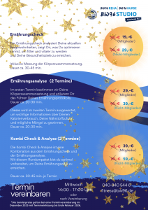 Ab dem 08.01.2025 könnt ihr euch Termine für verschiedene Angebote buchen und euer Ess- und Ernährungsverhalten analysieren und euch individuell beraten lassen.